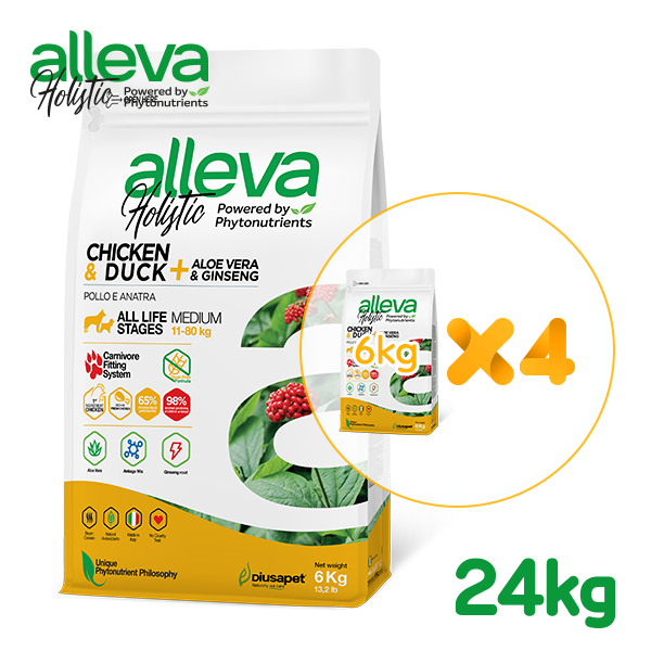 (전연령 중형대형견)알레바 홀리스틱 치킨&덕 + 인삼 & 알로에 베라 미디움/맥시 24kg