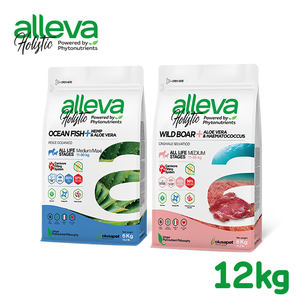 (전연령 중대형견)알레바 홀리스틱 멧돼지 + 알로에 베라 & 헤마토코쿠스 미디움 12kg (6kg *2개)